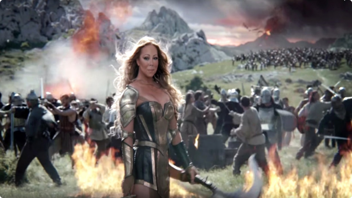 Upon the release of a new commercial for the Game of Thrones-inspired smartphone game Game of War starring Mariah Carey (the ad, not the game), a friend posted a link to an online news article on Facebook, the headline of which read: “Mariah Carey Slays A Dragon In Bizarre New Video Game Ad.” Since this wasn’t the first headline I had seen worded in a similar fashion (other examples include “See Mimi run! Mariah Carey is the clumsiest warrior princess ever in new video game ad” or “Mariah Carey has two bizarre seconds of screen time in ‘Game of War’ ad”), I left this comment (the post has since been deleted, so I’m quoting from memory): “Why is everybody and their mother making fun of this? It’s not any more bizarre than any other TV commercial for computer games” – I may have added an extra f-bomb or two – and I followed up with: “If this were Beyoncé, it would be ‘iconic’, but since it’s Mariah, it’s ‘bizarre’? I don’t get why everybody seems to hate her all of a sudden. Because Britney got too boring to ridicule?” A short exchange ensued, concluded by my friends with the words: “I will not have a serious discussion with you on the ridiculousness of Mariah Carey.”